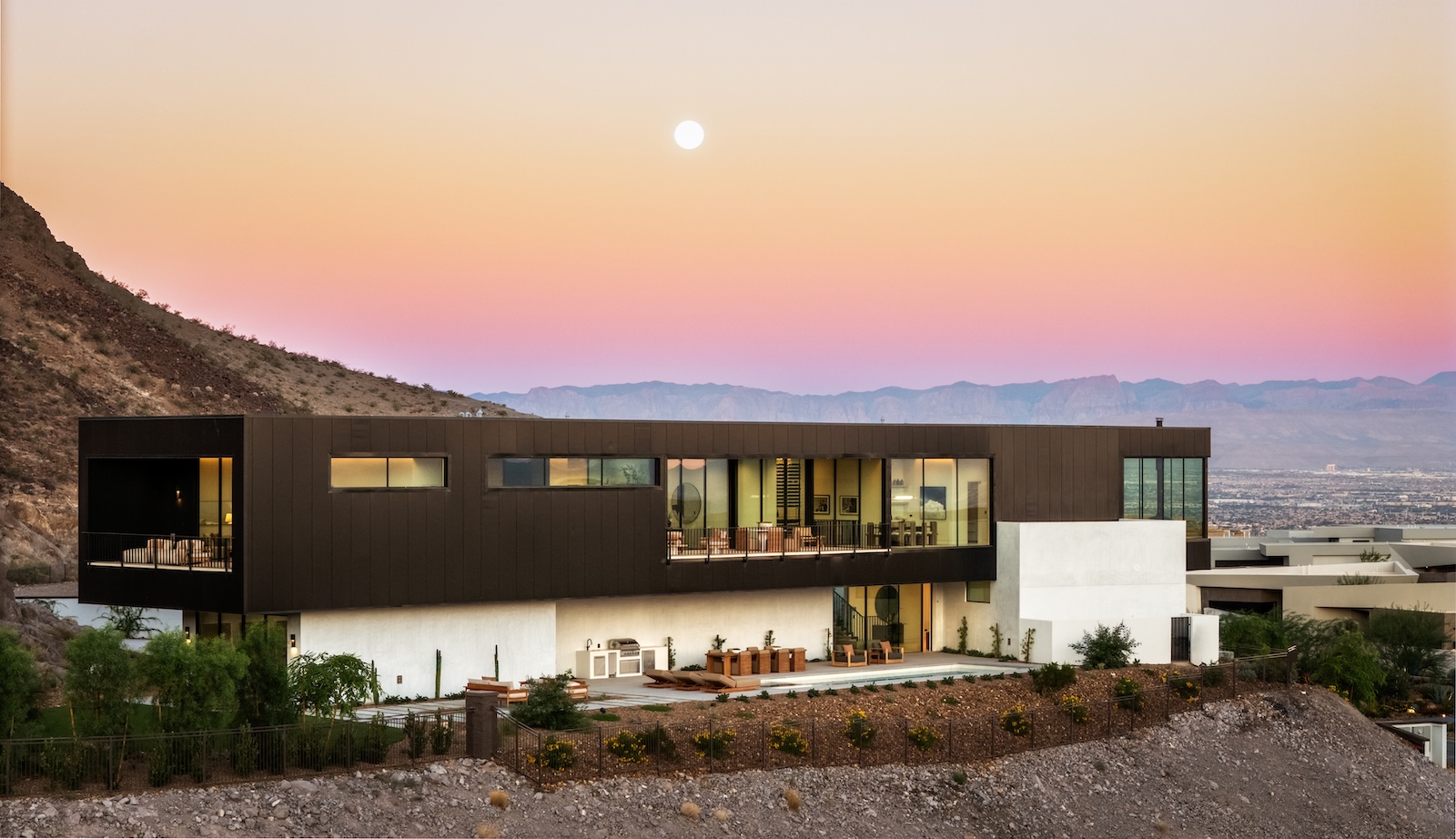 An architectural work of art, 11 Chisel Court Crest showcases extraordinary desert contemporary design by studio g ARCHITECTURE, set amidst sweeping, 270-degree views of the Las Vegas Valley, Strip and surrounding mountainsides. Situated on an ultra-private corner homesite within Ascaya, the striking architecture is on display from down the street before arrival through the private gated entry showcasing the cantilevered living space adorned by a signature fire feature. The inspired design vision pays homage to mid-century modern architecture, enhanced by thoughtful contemporary sensibilities. Open-plan interiors showcase the meticulous quality of finishes, care and design, while 11-foot Styline window walls frame the dichotomy of views from the mountain peaks to the valley floor, bathing interiors in natural light.